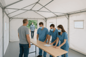 テントだからこそ緊急時に設置・撤去が手軽に行えます。