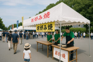 イベント会場でもカラー天幕はひときわ見立ち、差別化や目印にもなります。