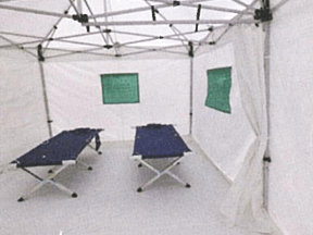 グランドシート・仕切り幕・消毒液フォルダーを標準装備
