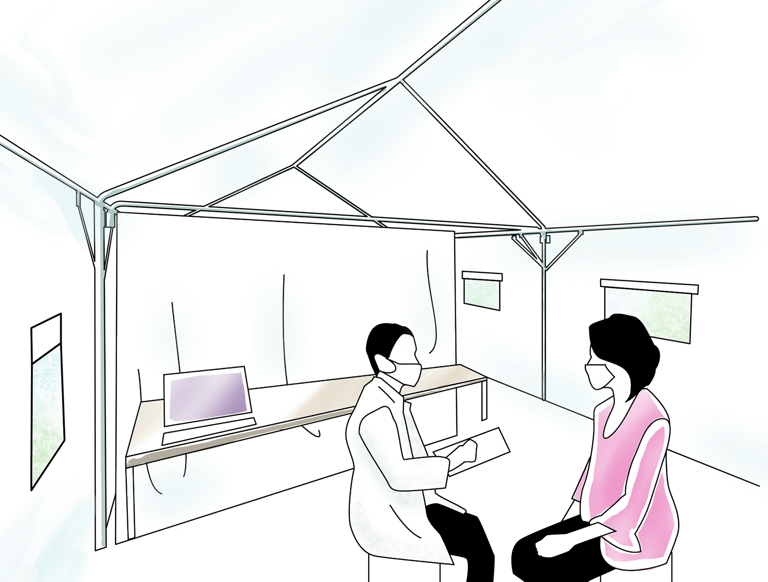 臨時の検査室や診察室などに使用できます。