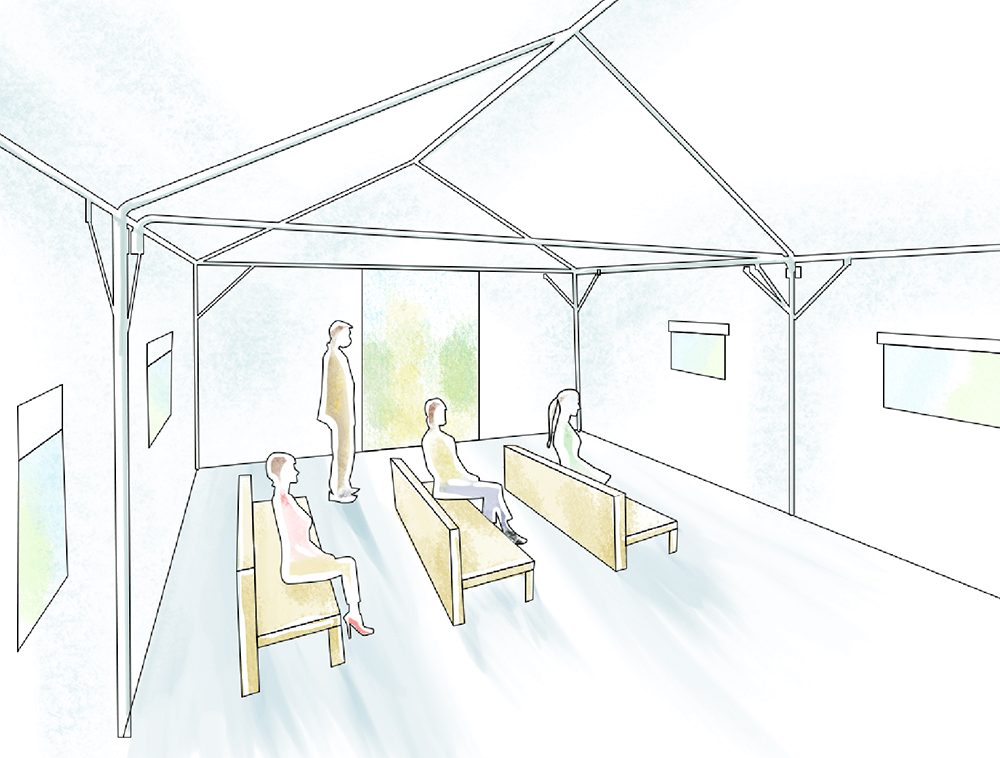 臨時の受付・待合室に