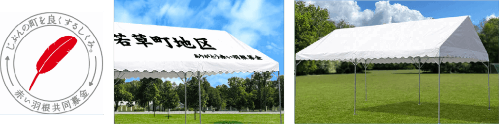 社会福祉法人 中央共同募金会は、地域福祉の推進を図るために社会福祉活動に必要な備品(テント等)を購入する際に「赤い羽根共同募金」助成を行っています。
