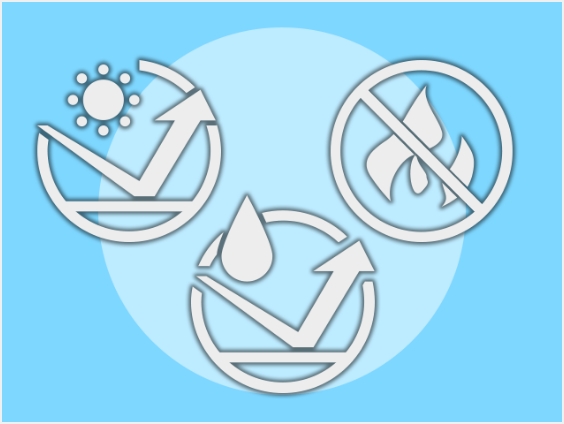 天幕は紫外線遮蔽率有害なB波99.9%カット 耐水度790から1500mm/mm以上に防水度UP 防火製品となっております。