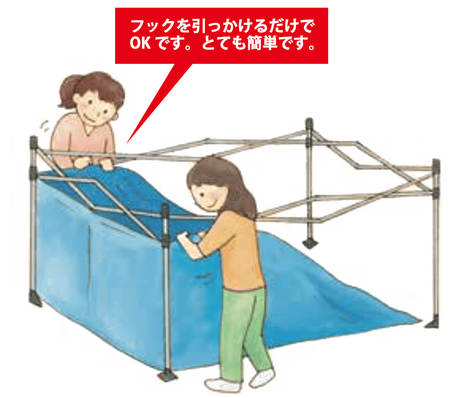 幕についているフックを引っかけるだけでOK。
