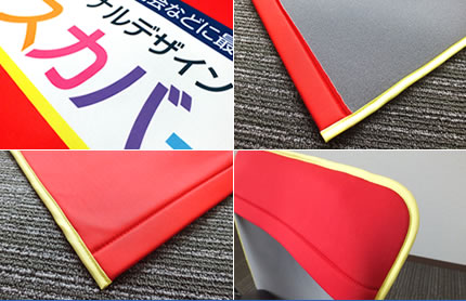印刷面はスムース生地を使用し、裏面はスポンジです。縁テープは12色からお好きな色をお選びいただけます。