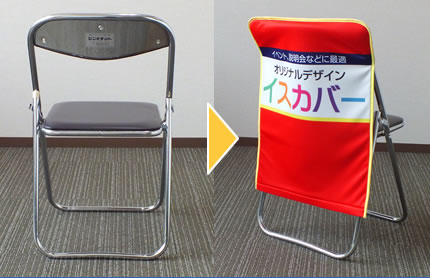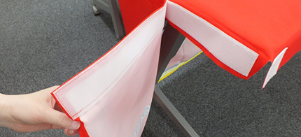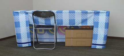 上記写真は背面の生地高が250mmあり、一般的なパイプ椅子を入れることはできますが、人が座って脚をいれるには、クロスにあたってしまうのでご注意ください。