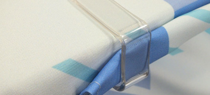 クロスは、コの字型のクリップを使って、テーブルに固定します。ずれることなくきれいに固定できます。また、色も透明なので目立ちません。