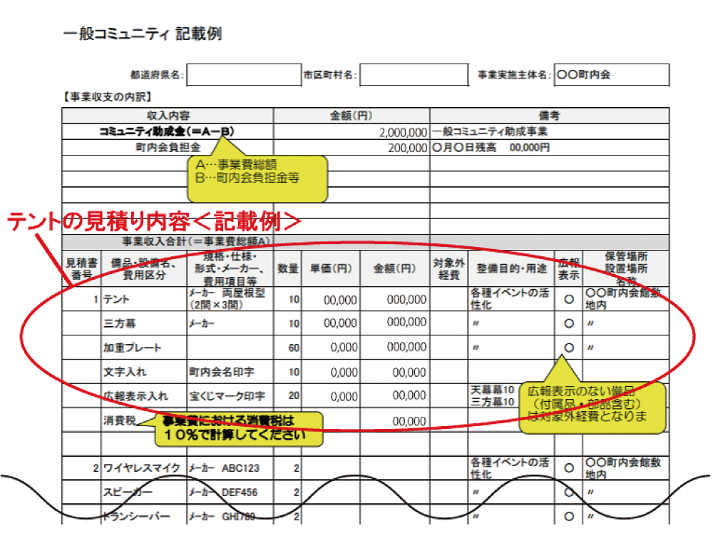 (自治会・町内会名入れ料金、宝くじマーク印刷料金も助成対象)